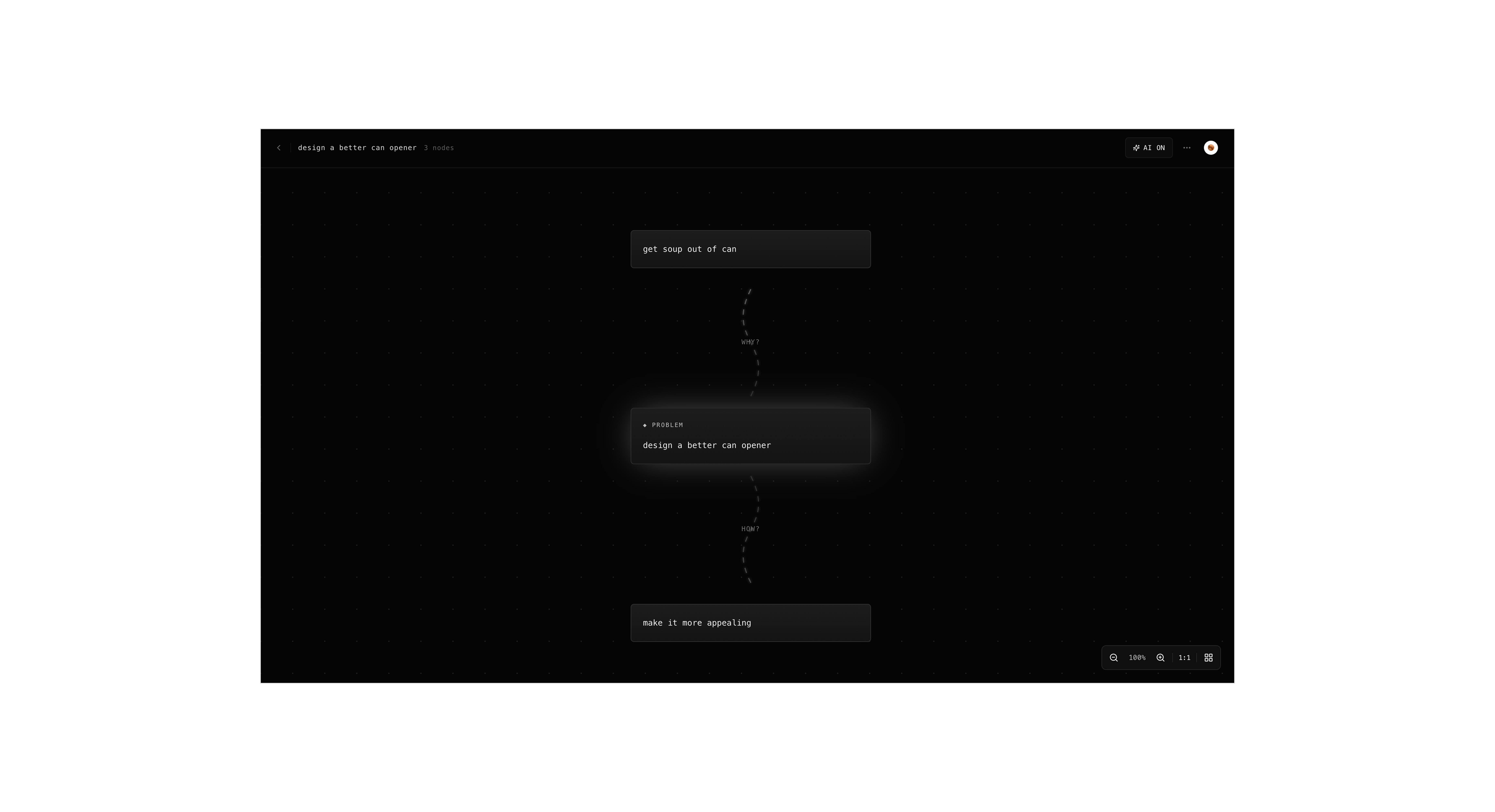Noema is a visual thinking tool that helps product teams move between why and how, turning vague problems into clear decisions before any solution is defined.